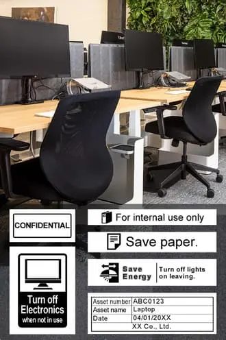 A wide variety of pre-designed label forms for different uses helps your label making. You can easily create original labels by simply replacing the text.