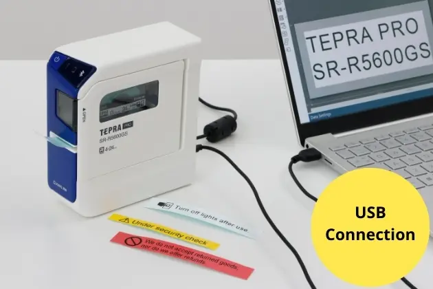 The SR-R5600GS offers two connection options: USB and Bluetooth. Whether you're using a Windows PC or an iOS/Android device, you can create high-quality, customized labels with ease and flexibility.