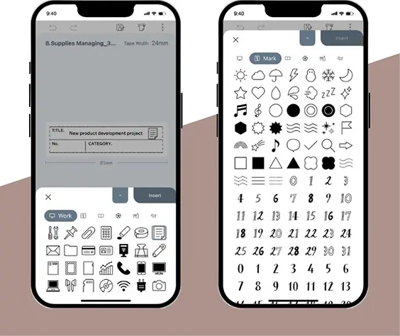 A wide variety of pre-designed label forms for different uses helps your label making. You can easily create original labels by simply replacing the text.
