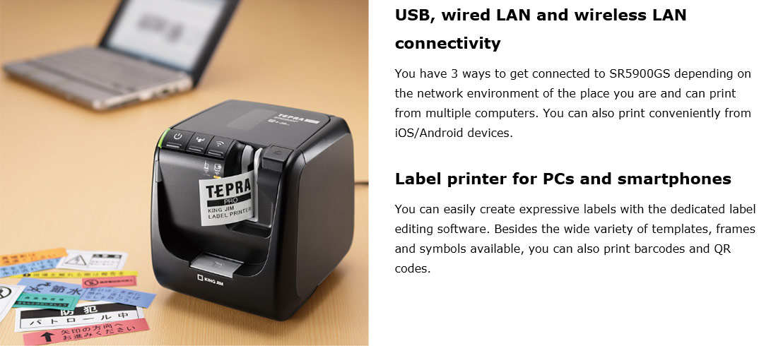 Create labels whenever necessary with "TEPRA". You can print labels remotely via wireless connection.