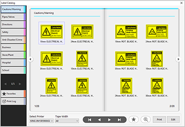 A wide variety of pre-designed label forms for different uses helps your label making. You can easily create original labels by simply replacing the text.