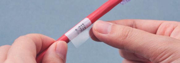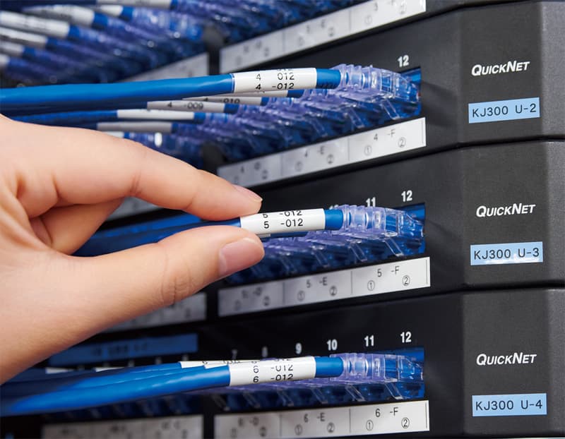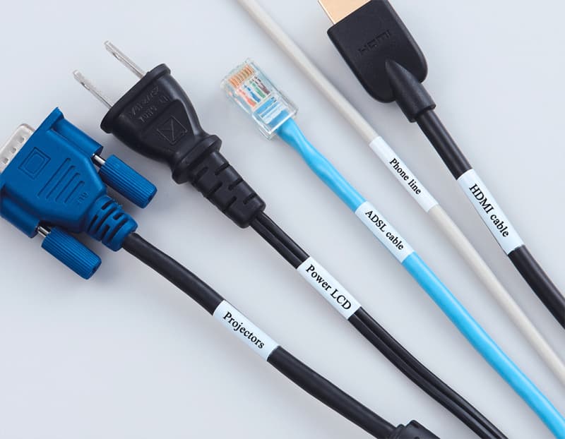 It's called self-laminated type, which has a blank part to be printed and a transparent part to wrap around. Attachment to messy cables prevents mistaken connections and facilitates maintenance.