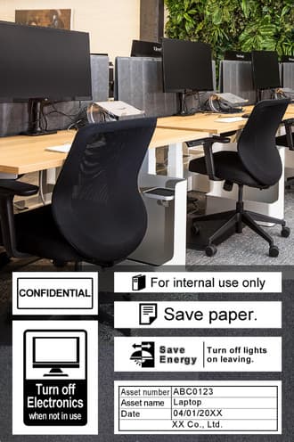 The "TEPRA" PRO label printer series fits in with any scenario at any location, including offices, factories, warehouses, retail stores, and public facilities, to create file folder labels, equipment management labels, barcodes, warning labels, and more.