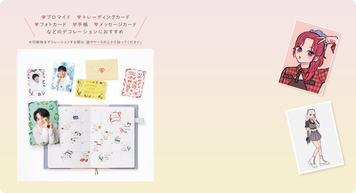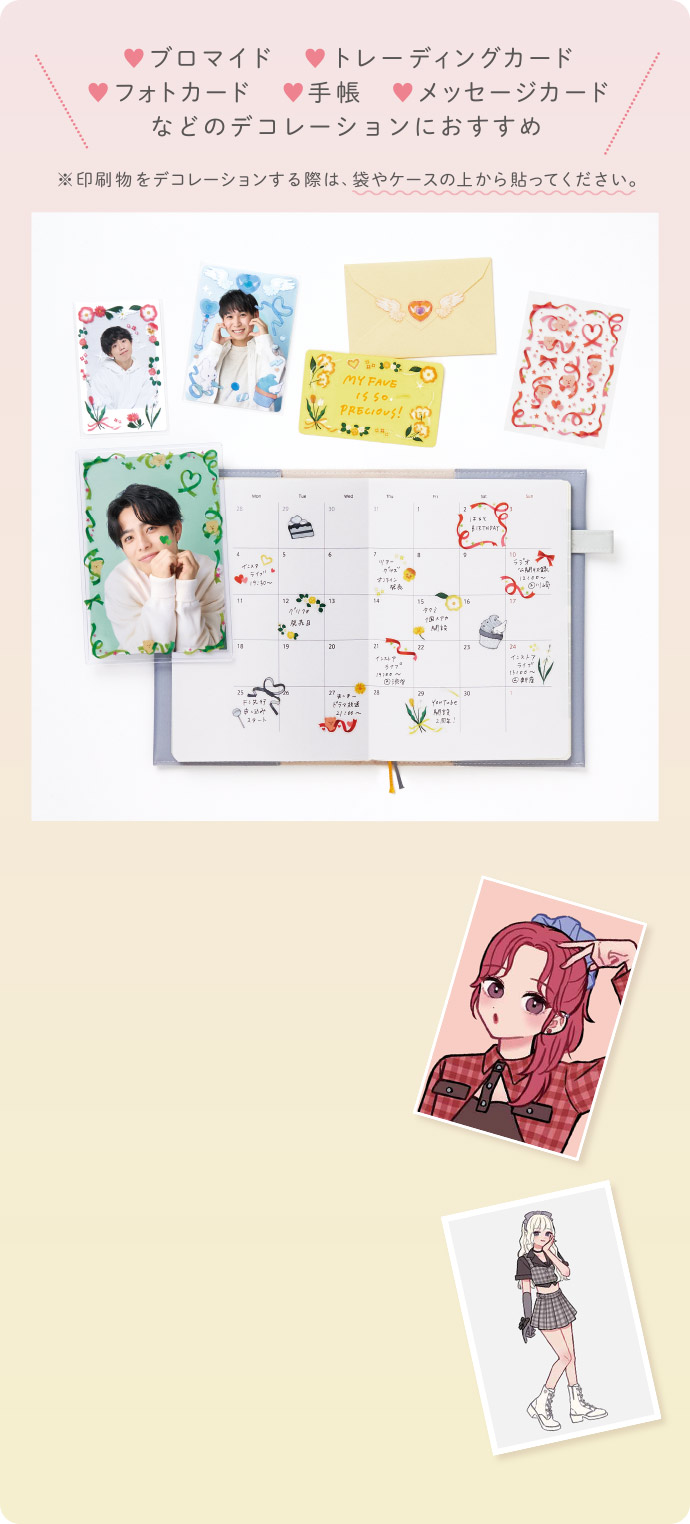 - ※貼りつける対象によって、印刷がはがれたりノリ残りする場合があります。