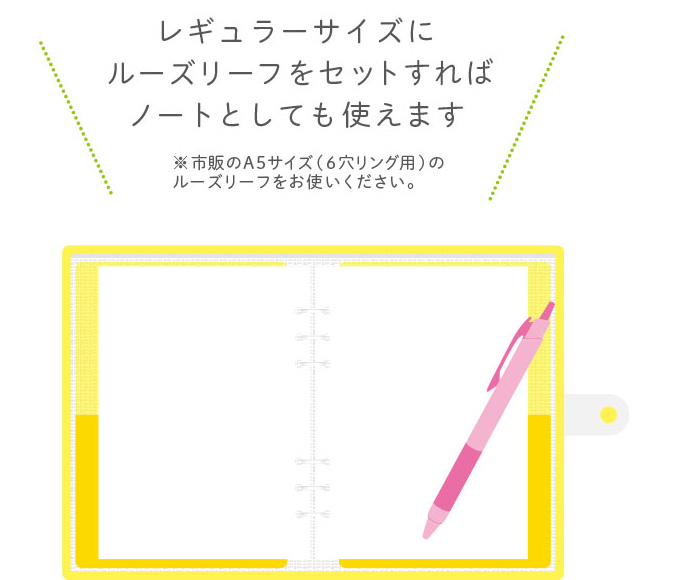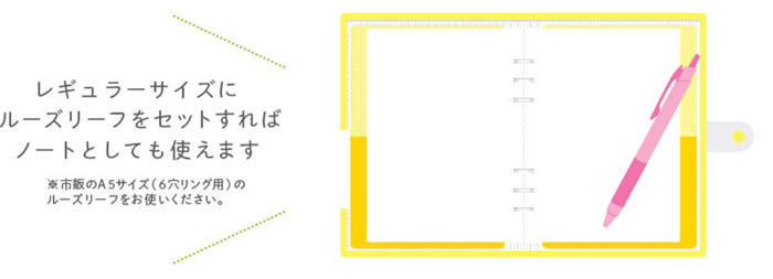 | 最大収納枚数 | ミニルーズリーフ(3穴)方眼は約50枚、ポケットリフィル(3穴)は約30枚収納可能 |