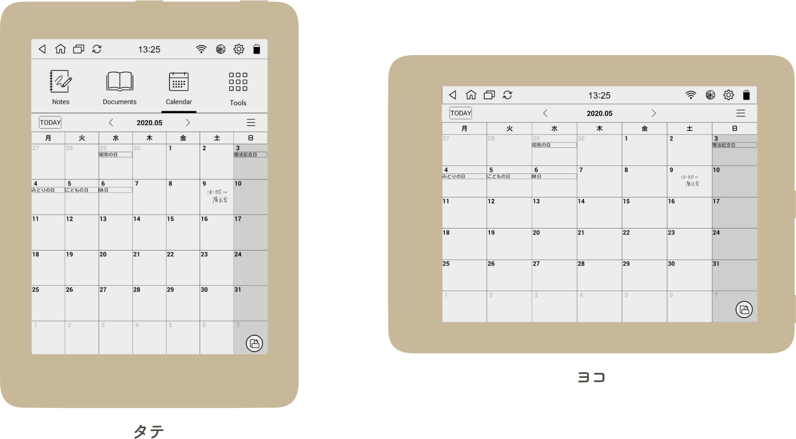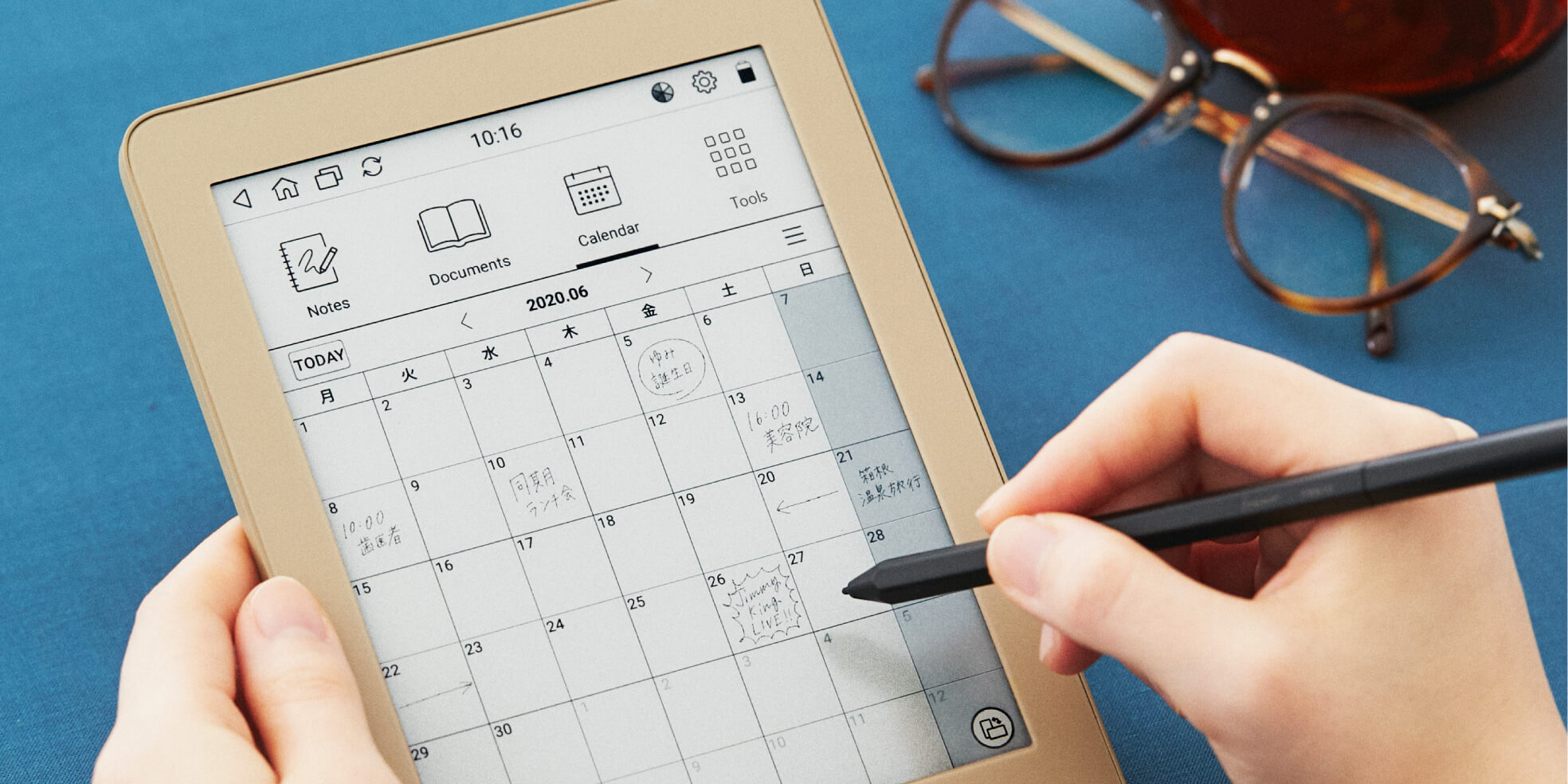 画面にはE Ink社の “電子ペーパーディスプレイ”を採用。まるで紙のように見やすく、スリープ時にもノートやカレンダーなどを常時表示できます。