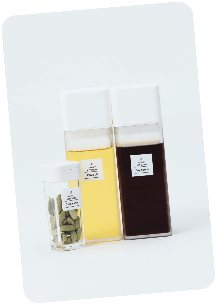 調味料や洗剤のボトルなど、同じ場所で複数並べて使うラベルを