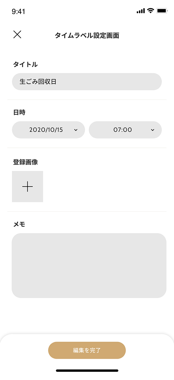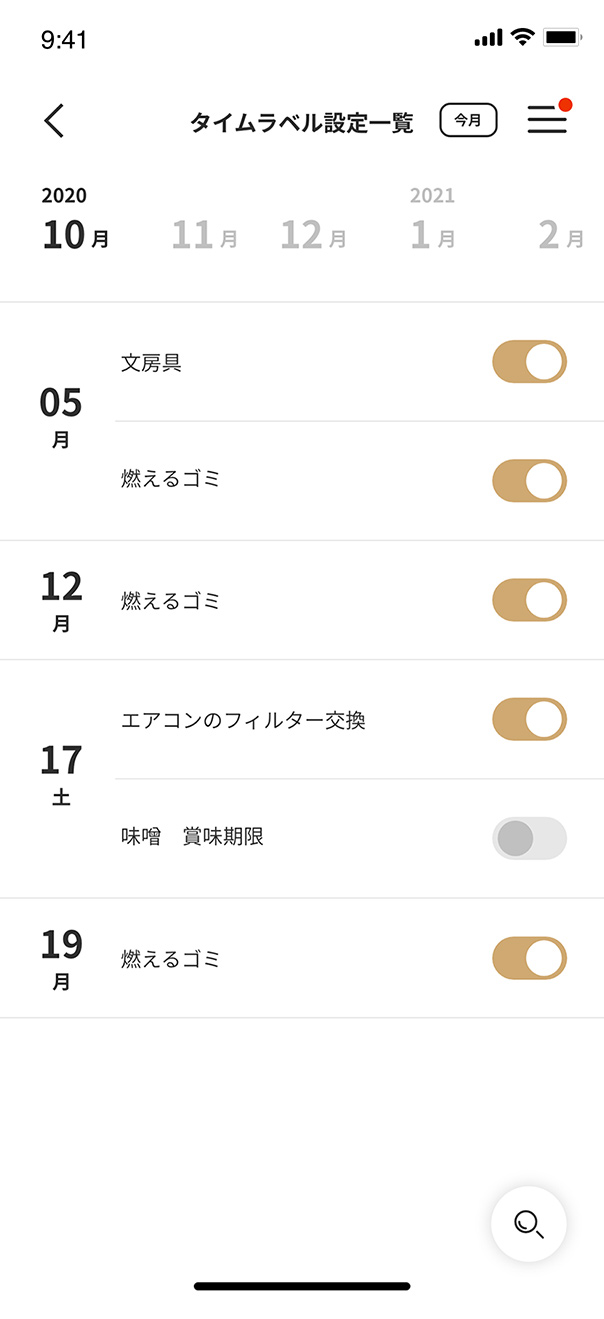 印刷したラベルに日時や曜日などの設定を紐づけて、指定した時間に通知を受け取ることができる機能です。忘れがちなフィルター交換やゴミ出しの曜日、保存食の管理などにおすすめです。
