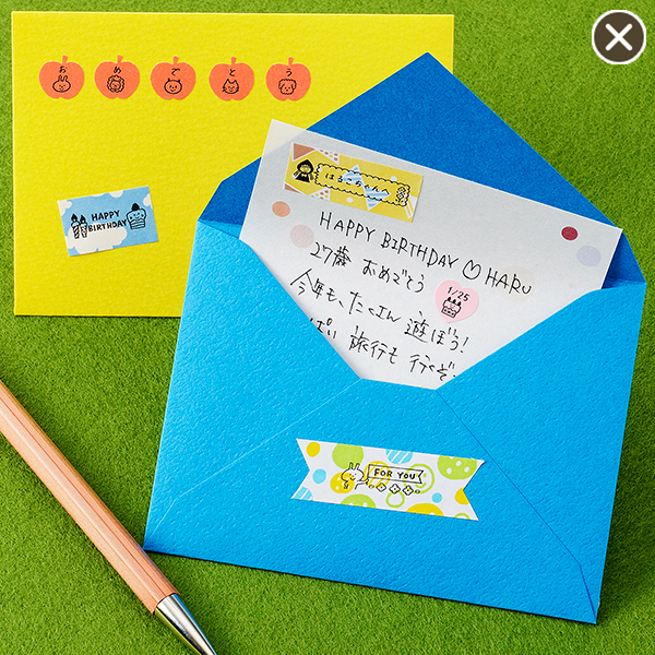 メッセージカードにLONGシールやKIMOCHIシールを貼れば、あっと言う間にわくわくするカードの完成です!