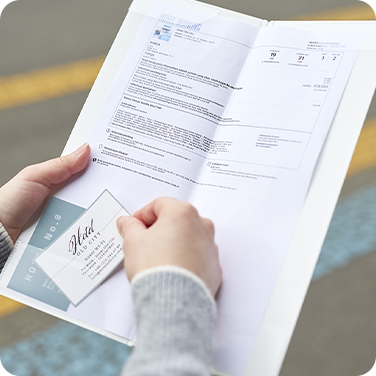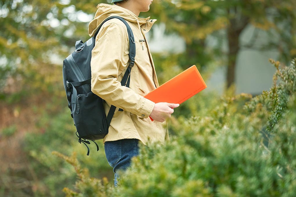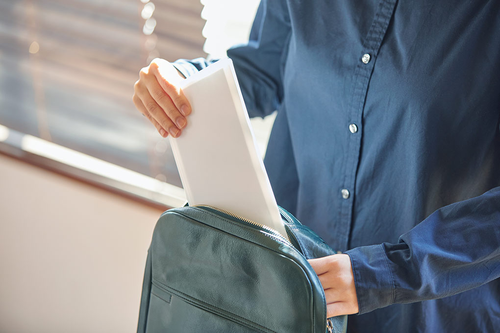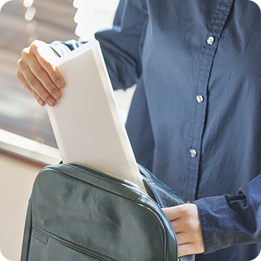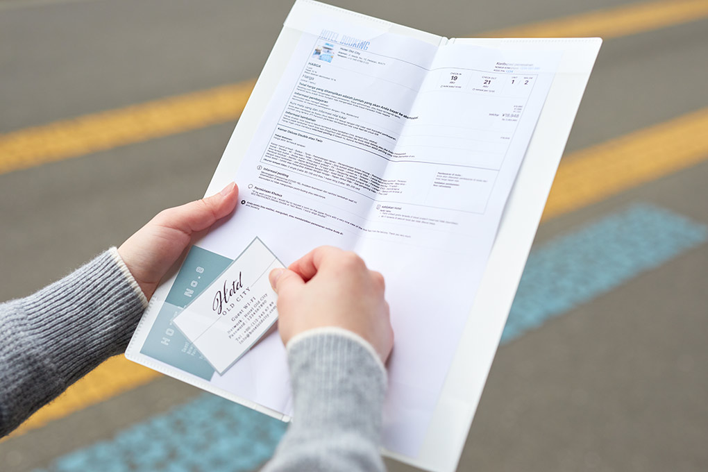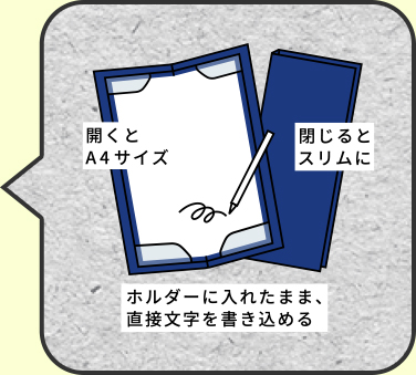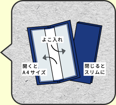 - ※ご使用になる際は、必ずA4書類を谷折りしてから、ポケットまたはフラップに入れてください。