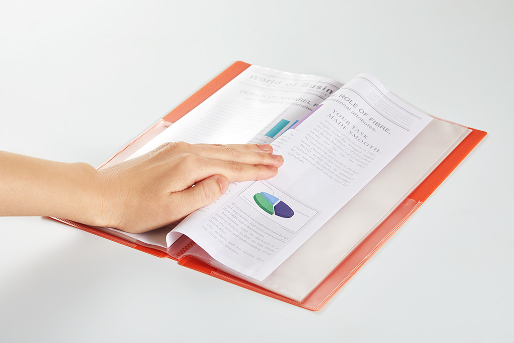 - ※クリアーファイル ホッソの見開き1ポケットあたりの推奨収納枚数はA4書類1枚です。