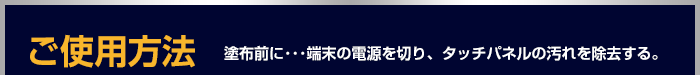 | 推奨する塗布対象 | ガラス製タッチパネル (表面にフィルムが貼ってあるものや他のコーディング剤塗布済のものを除く) |