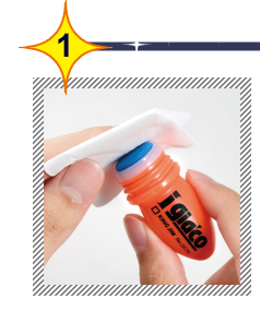 液漏れを防ぐため、キャップを下に向けて開ける。液の飛び散りを防ぐため、スポンジ面を上にしてティッシュペーパーで数回軽く押す。※キャップを外した際に液が漏れる場合がありますのでご注意ください。