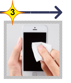 図のように内側から外側に向けて塗布する。※スピーカーやマイクなどの凹凸部に液が入らないようにご注意ください。