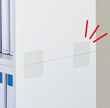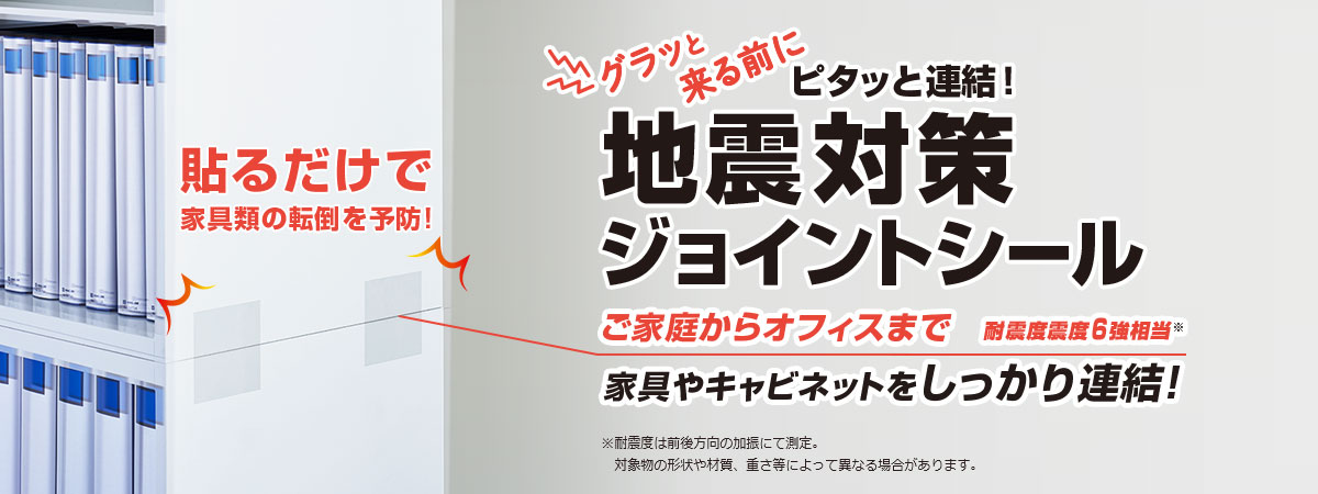 - 本製品は対象物同士を連結するためのシールで、対象物の転倒を完全に防止するものではありません。連結後に転倒防止対策を併用してください。