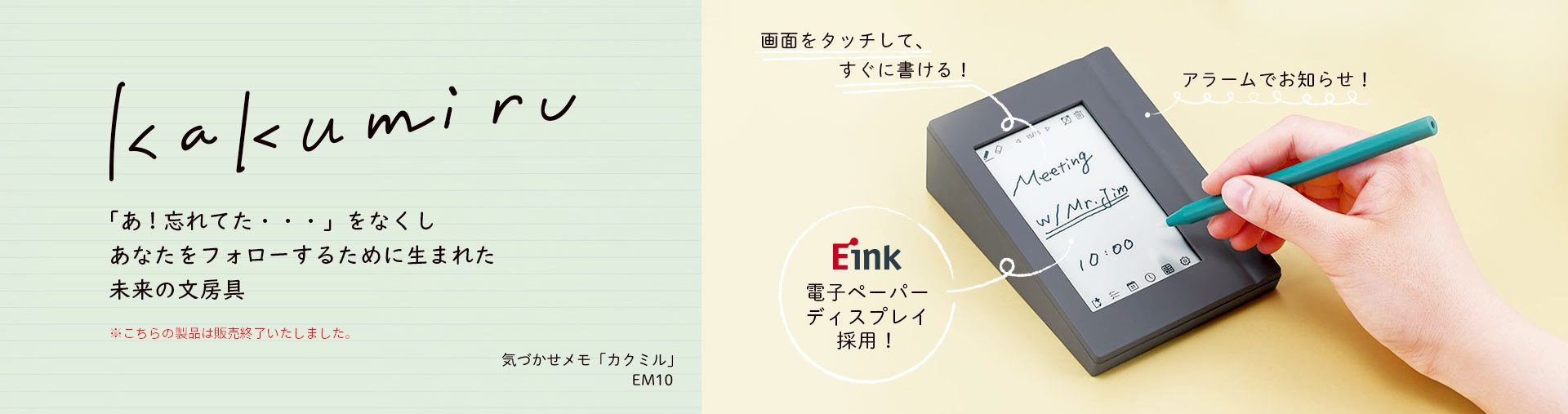 電子ペーパーを採用することで、これまでの紙と同じように常にメモを表示し、さらにアラーム機能によりあなたの大切な予定をお知らせします。