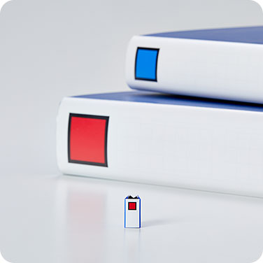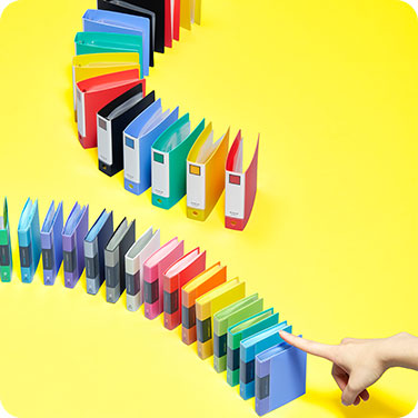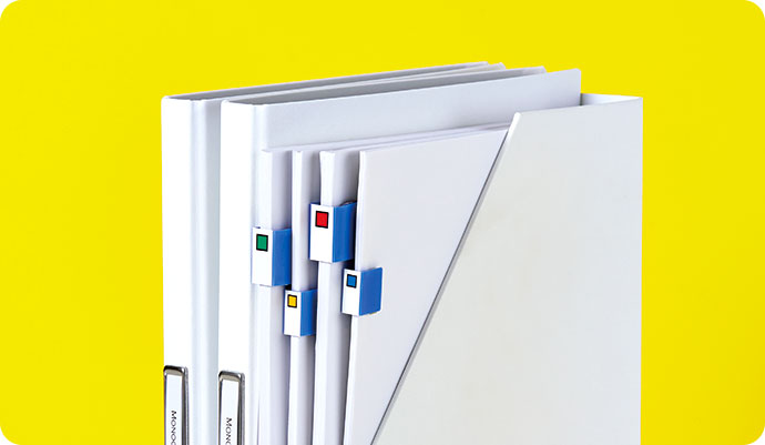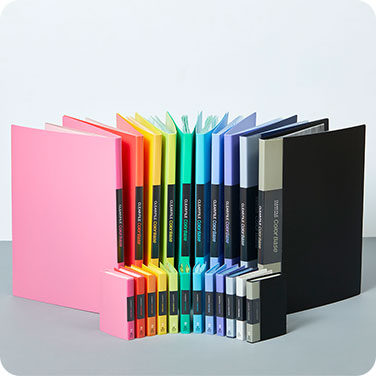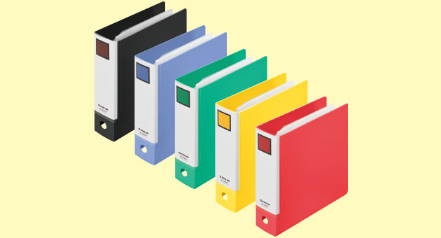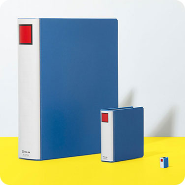 - PP(表紙・ポケット)、スチール(とじ具)、紙(背見出し紙)