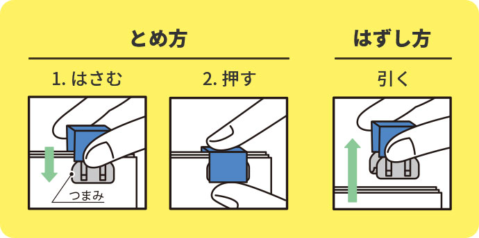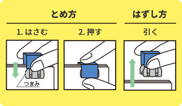 - ※クリップは鋭利なため、手や衣類などを傷つけるおそれがあります。お取り扱いには十分ご注意ください。