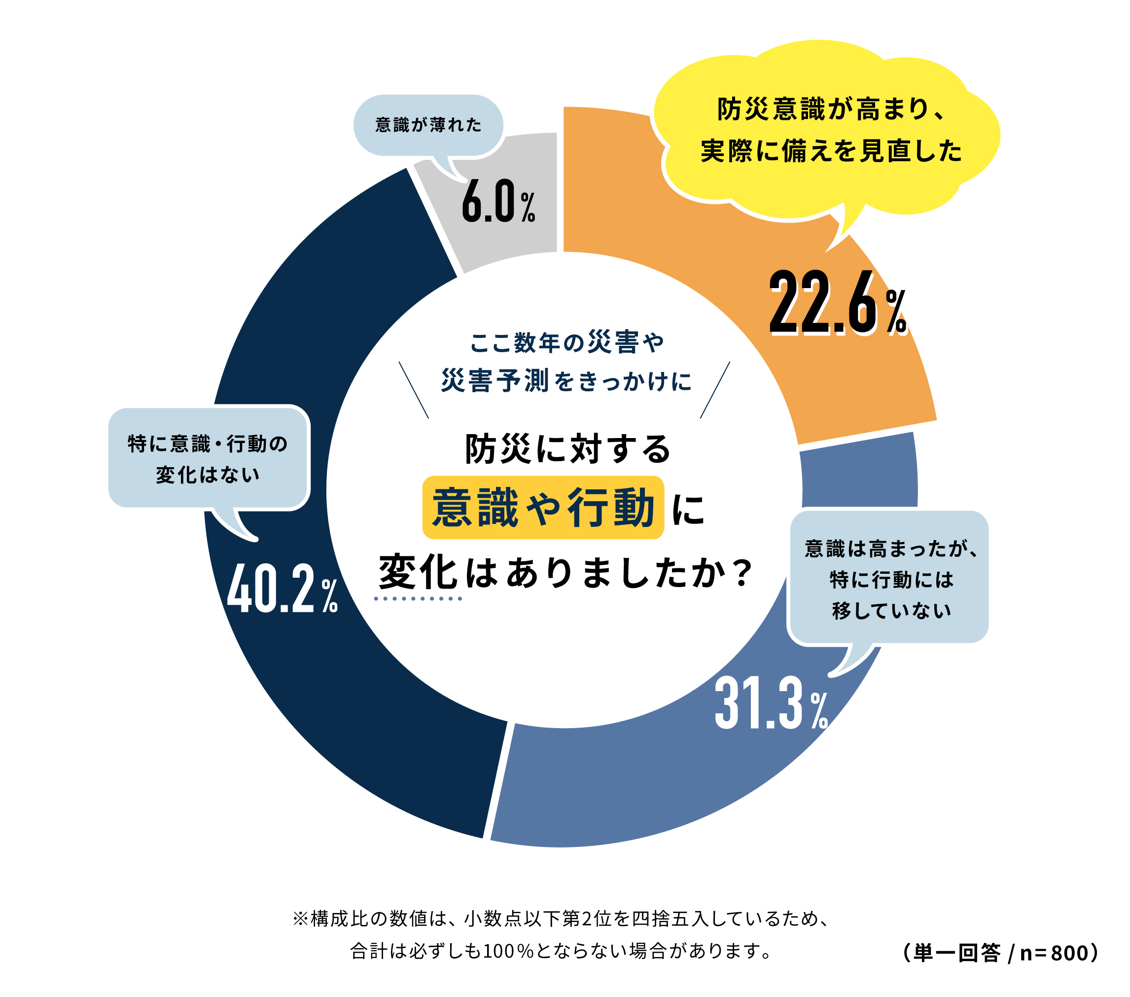 全国の20歳~69歳の男女 800名を対象に、家庭の防災に関する意識調査を実施しました。