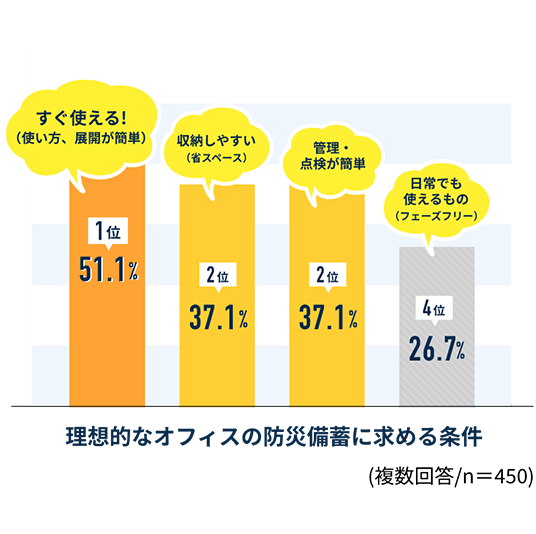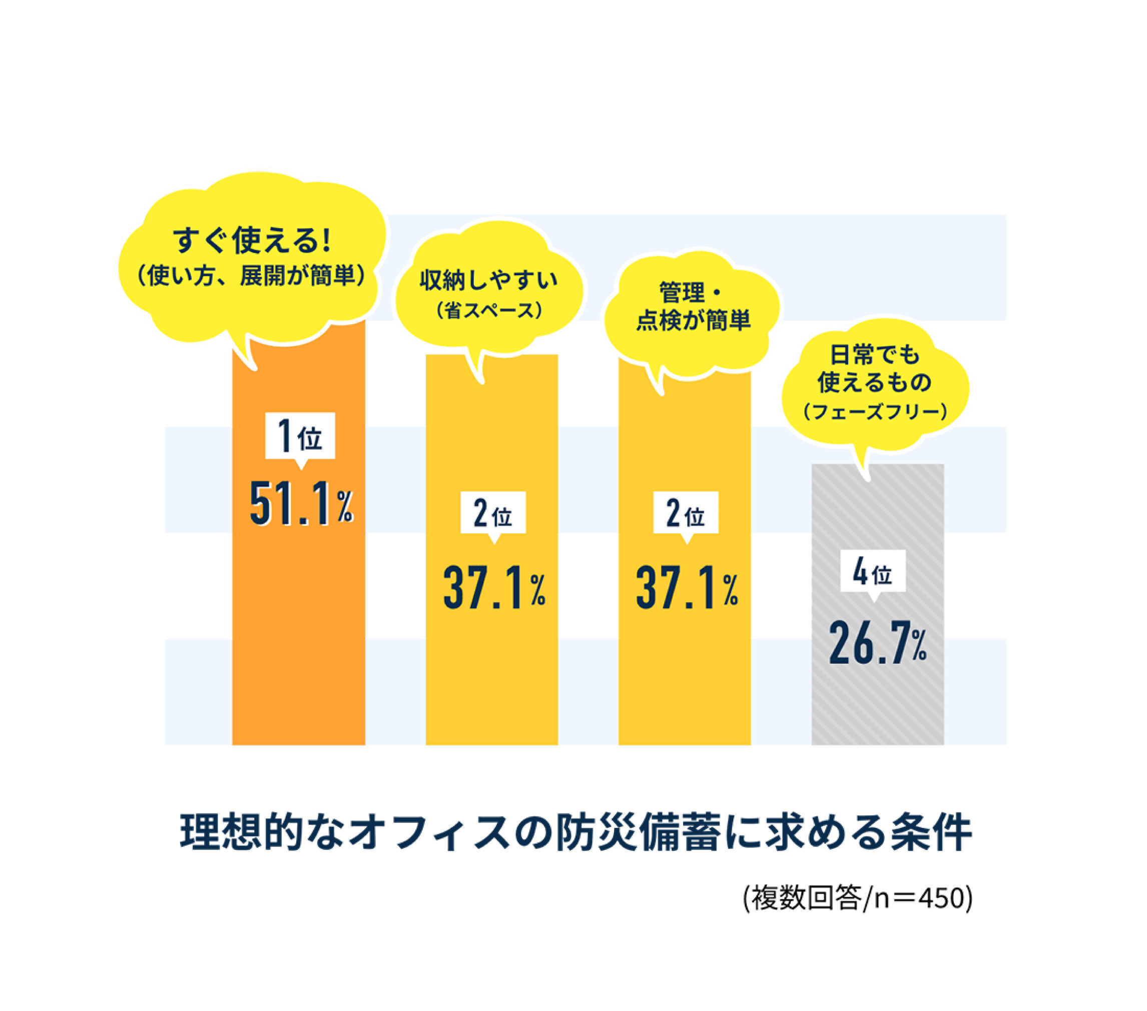 全国の企業で働く施設管理・防災担当者450名を対象に、オフィス防災に関する意識調査を実施しました。