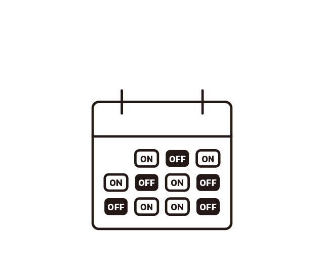 Myカレンダー設定で、アラームのON/ OFFをワンタッチで切り替え。シフト勤務で出勤日が変則的な人でも、すぐにアラームが設定できます。