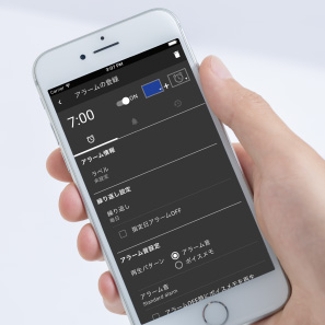 スマートフォンやPCからアラームの設定が可能。急な予定が入っても、その場でアラーム時間を変更できます。