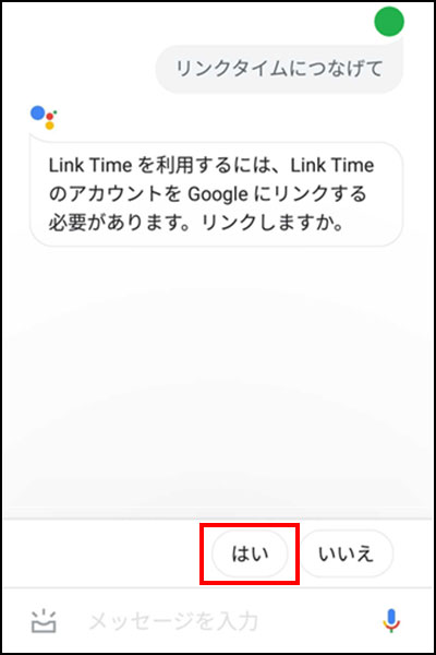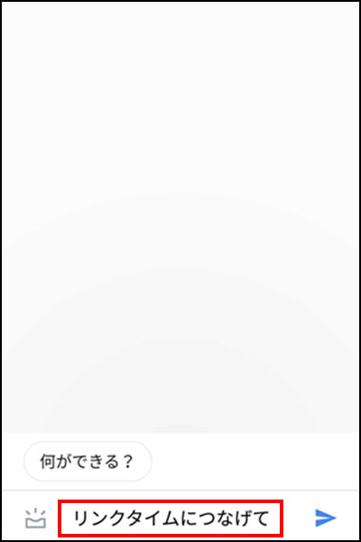 Google Assistantアプリを起動して、「リンクタイムにつなげて」と入力しましょう。