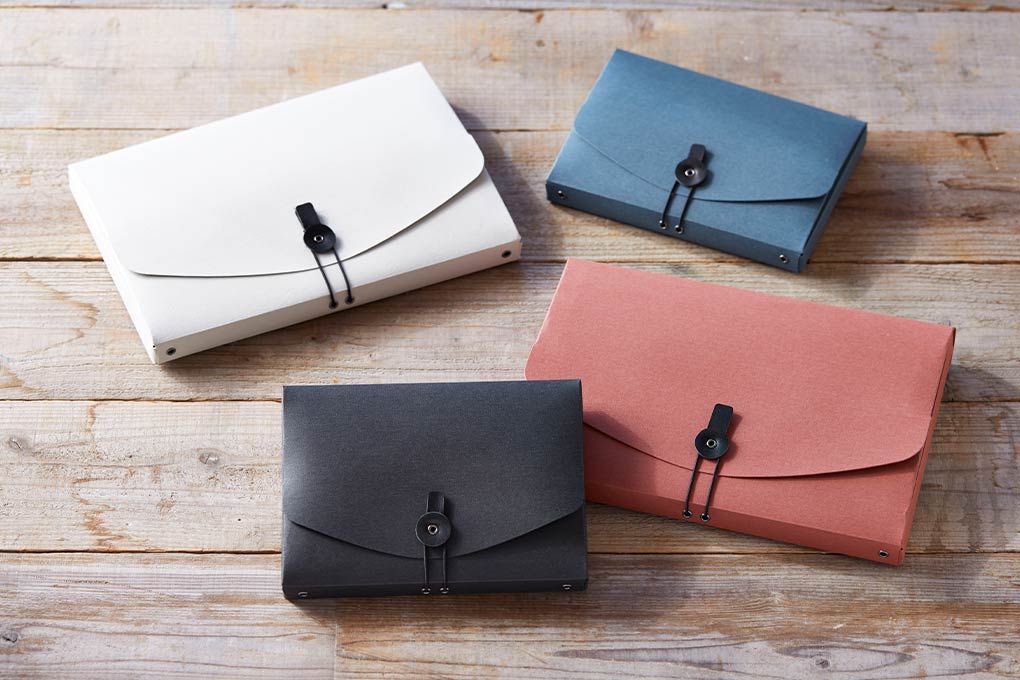 | 材質 | 本体:紙(パルプ)、留め具:表…本革・ゴム、裏…面ファスナー |