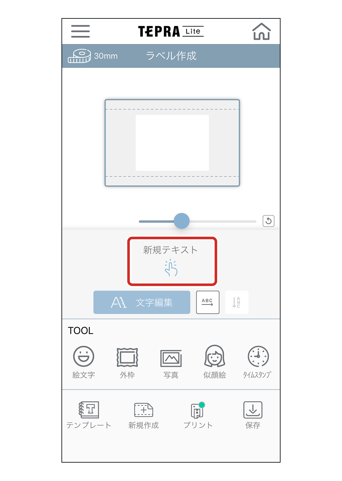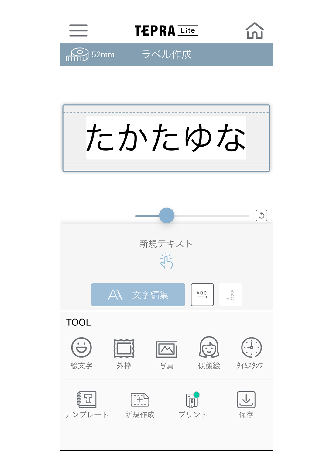 (新規テキスト)をタップすると、テキストブロックを新たに追加することができます。 ・テキストブロックをタップすると、文字編集状態に戻ります。テキスト入力エリアの文字をタップすることで、文字の再入力ができます。