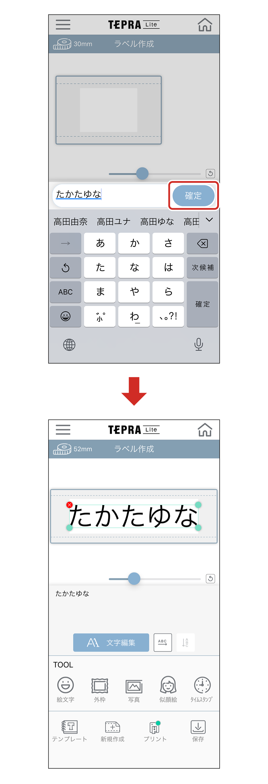テキストブロックを複数使うと、たて書きとよこ書きが混在するラベルを作成することができます。