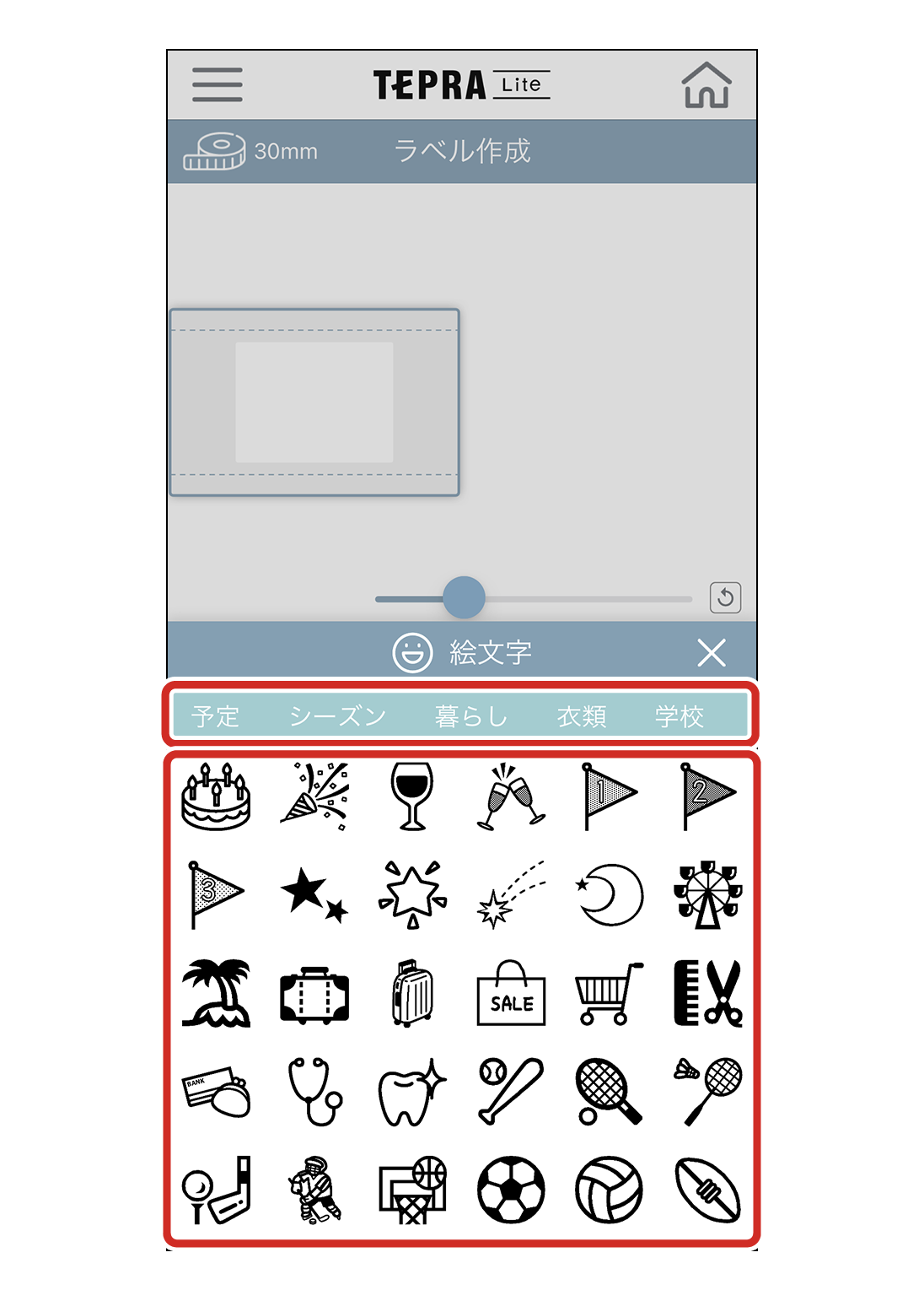 絵文字はラベルに挿入後、縦横比を自由に変更しながら拡大・縮小ができます。