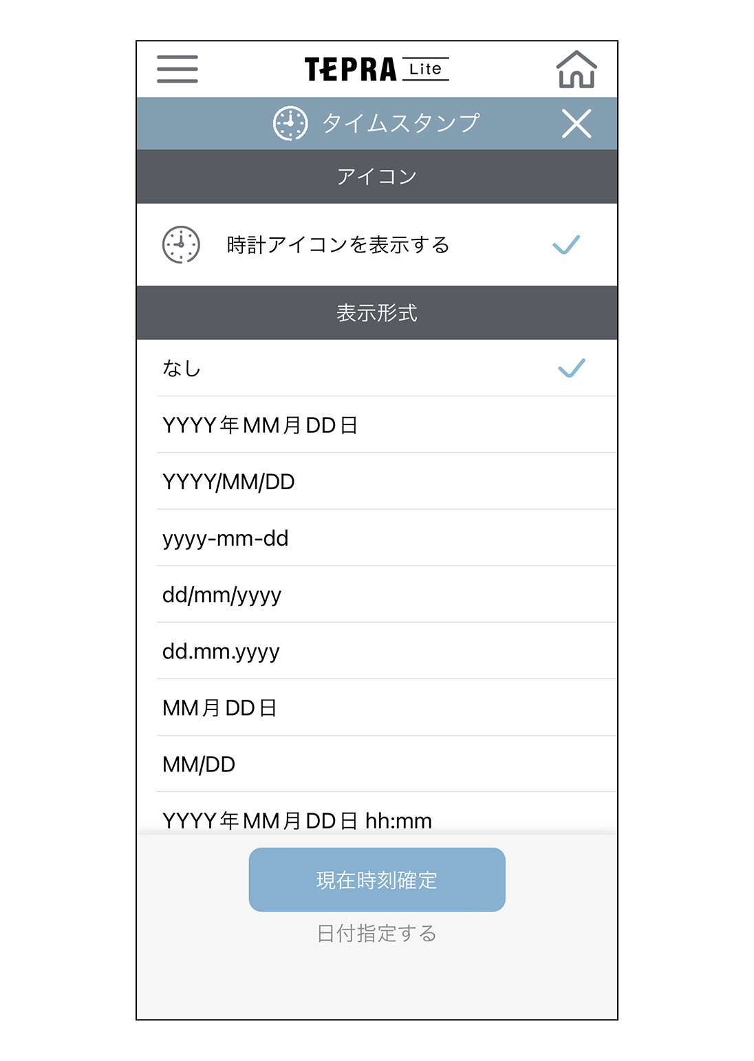 「時計アイコンを表示する」にチェックを入れ、「表示形式」をタップします。 -