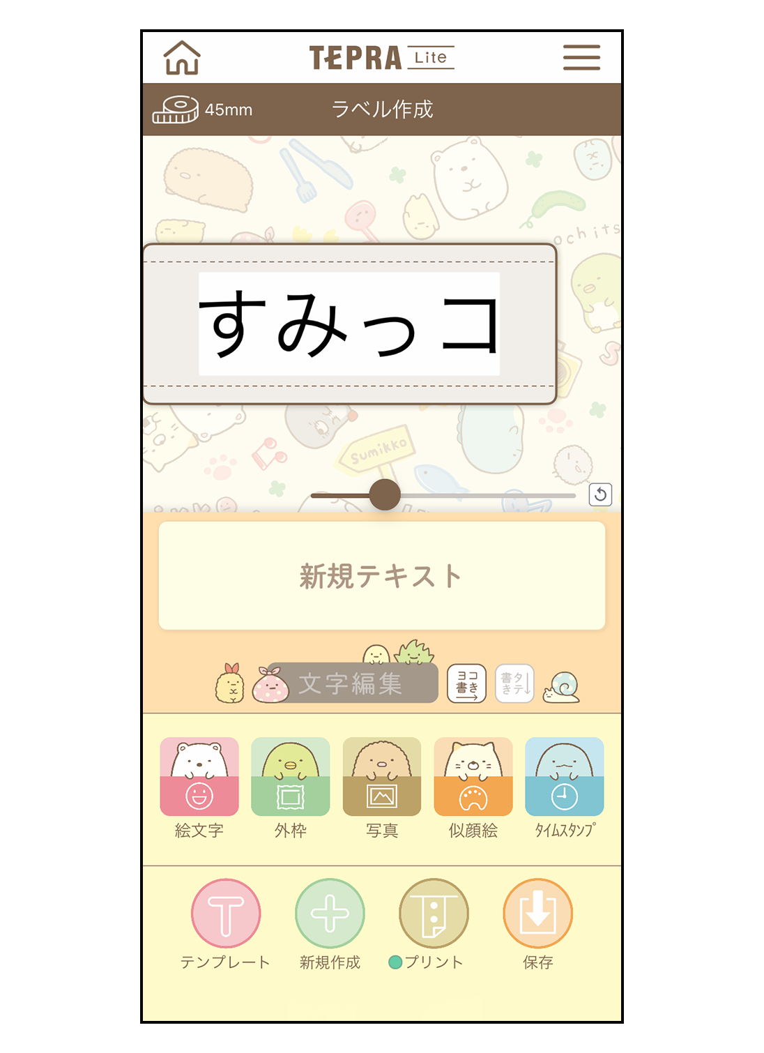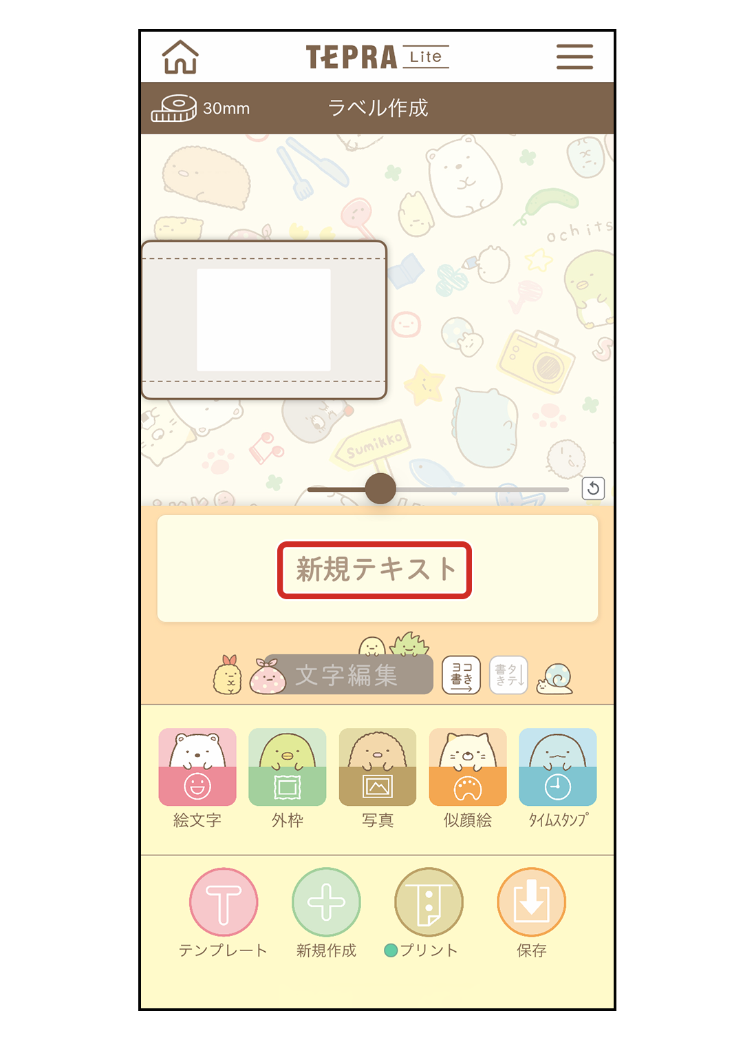 ・「新規テキスト」をタップすると、テキストブロックを新たに追加することができます。・テキストブロックをタップすると、文字編集状態に戻ります。テキスト入力エリアの文字をタップすることで、文字の再入力ができます。