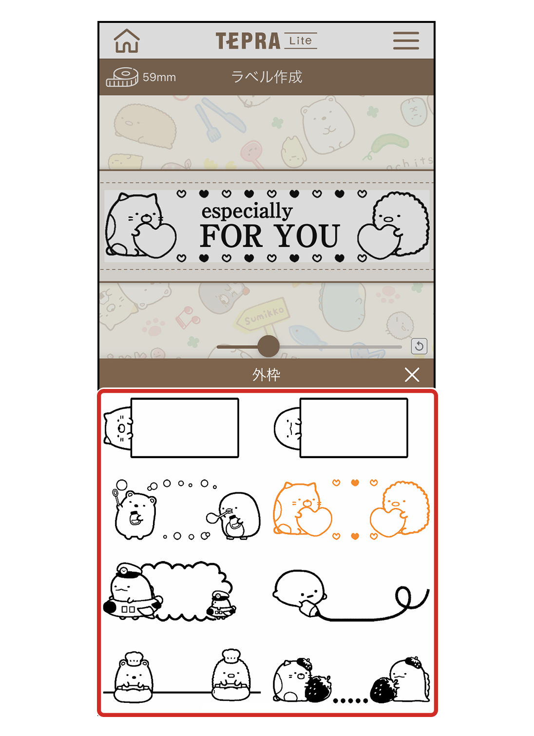 挿入した文字や絵文字によって、外枠が重なる場合があります。必要に応じてサイズを小さくするなど、重ならないように調整をしてください。