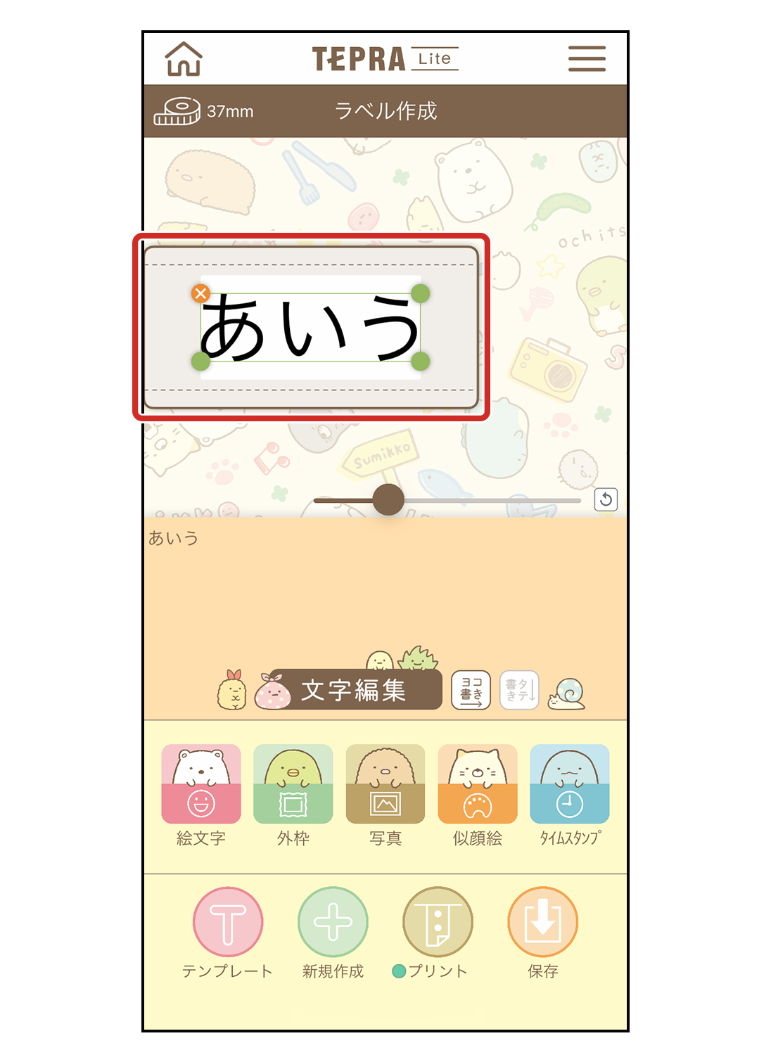 拡大・縮小バーをスライドさせるとラベルを拡大・縮小することができます。