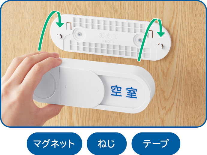 マグネット取り付けのほか、付属の取付補助板を使用すれば木製扉などにも設置できます。