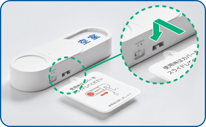カバーをスライドするとライトがゆっくりと点滅して、使用状況を知らせます。