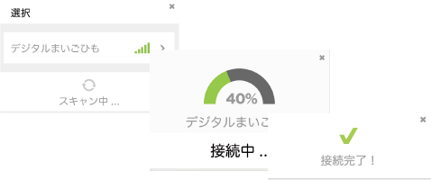 アプリを初めて起動すると、接続までのガイドが表示されます。画面の表示に従い、接続を行います。