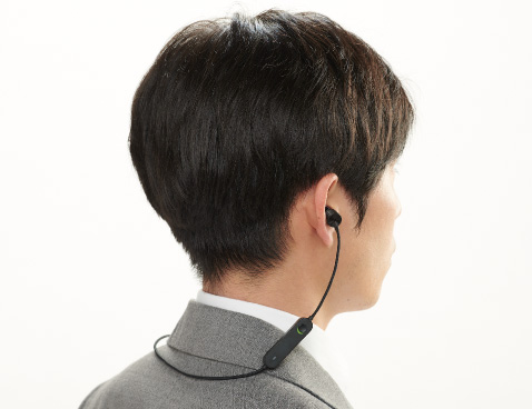 イヤホンケーブル一体型ネックバンド設計により、使いやすくスマートなデザインに。コードは絡みづらく丈夫な素材です。