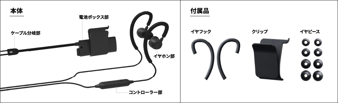 非使用時に首にかけた状態で左右のイヤホンをまとめることができます。
