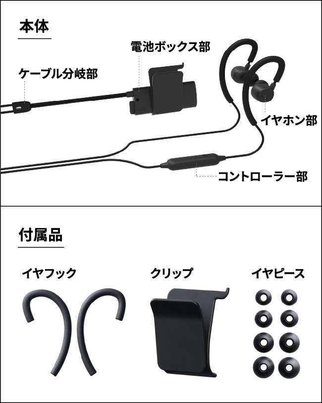 MM4000本体/クリップ/イヤフック/ ※イヤピースMサイズは本体装着済み |