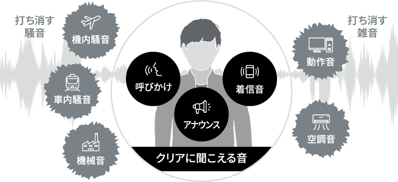 ※静かな場所や騒音の種類によっては、ノイズキャンセリング効果が感じられない場合があります。
