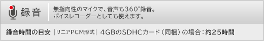 - ※録画/録音時の1ファイルあたりの最大容量は約2GBです。保存中のファイルが上限に達した場合は、自動的に新しいファイルが作成されます。