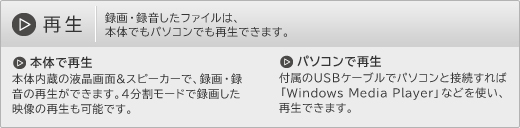| 記録形式 | 録画:AVI(Motion JPEG 形式)/ 録音: WAV(リニア PCM 形式) |