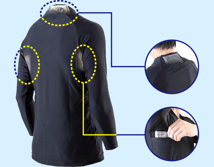 脇部分にメッシュ素材を採用し通気性を向上させることで、ウェア内に熱気がこもりにくく、空調服™と併用しても快適です。インナー本体が体の動きに合わせて伸縮するので、着心地が良く、幅広い作業に対応できます。