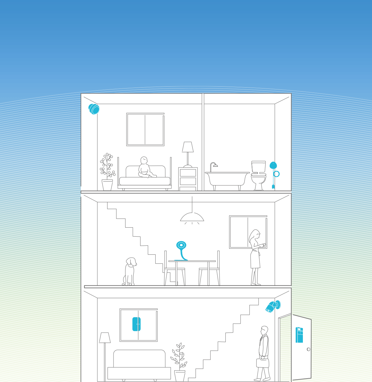 - ※スマートセンサー(ドア・窓)、(人感)、(漏水)は屋内専用です。スマートセンサー(漏水)は完全防水ではありませんので、水で濡らしたり、湿気の多い場所に設置しないでください。