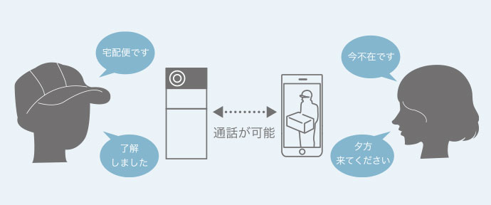 - 家の中や外出先からでも、リアルタイムに映像で来客者の確認ができます。