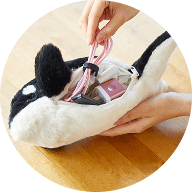 - ※本製品が破損する原因になりますので、鋭利な物を収納したり、強く引っ張ったりしないでください。
