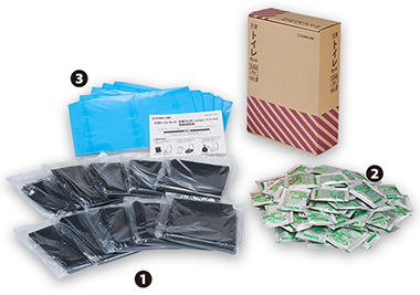 1日5回の使用で4日分の簡易トイレをコンパクトにまとめたセットです。