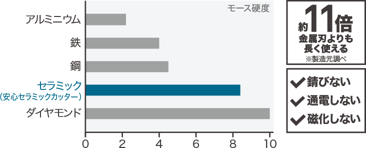 | 主な材質 | 本体…ABS、磁石 / 刃…セラミック |